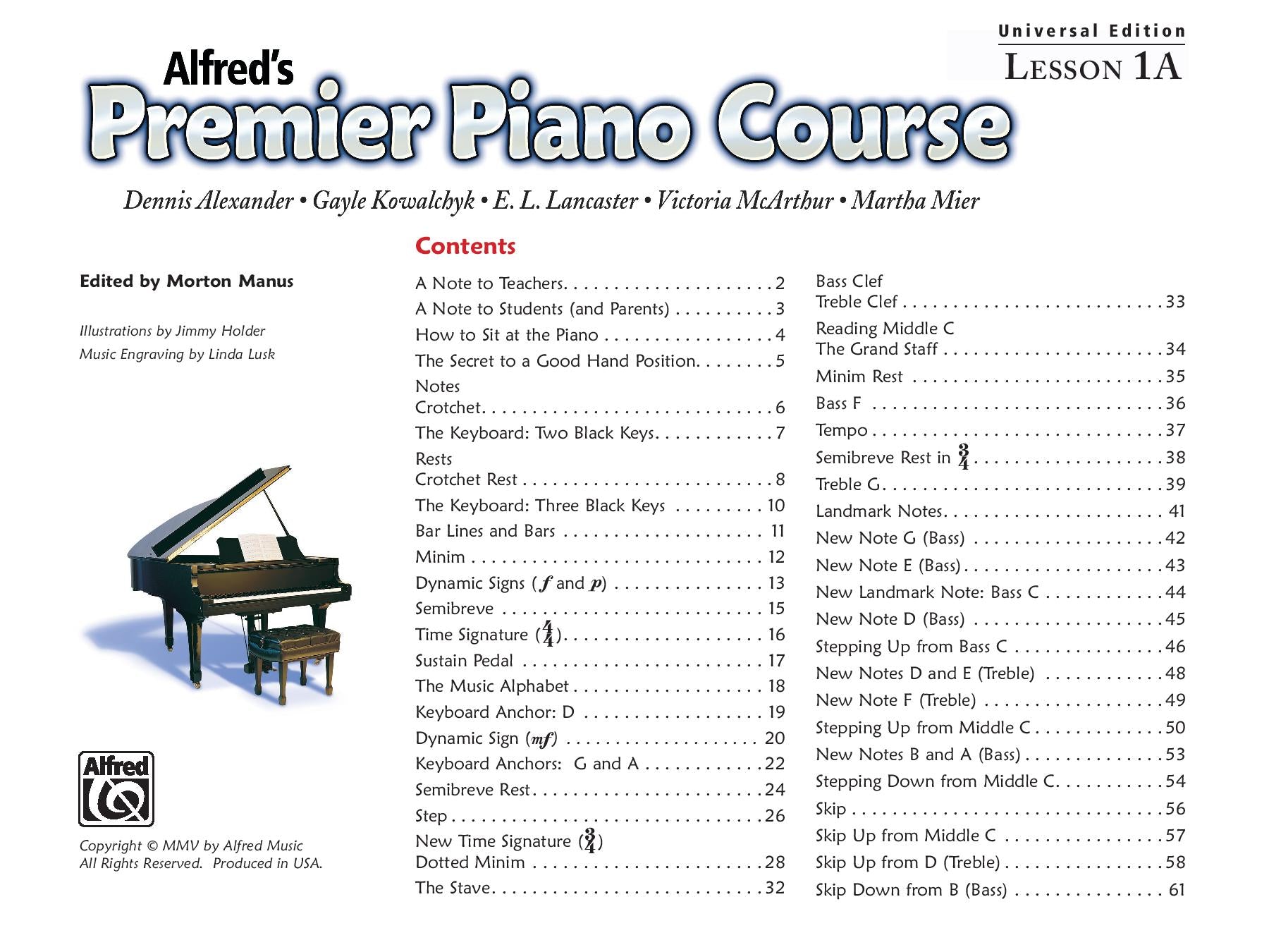 Alfred's Premier Piano Course, Lesson 1A