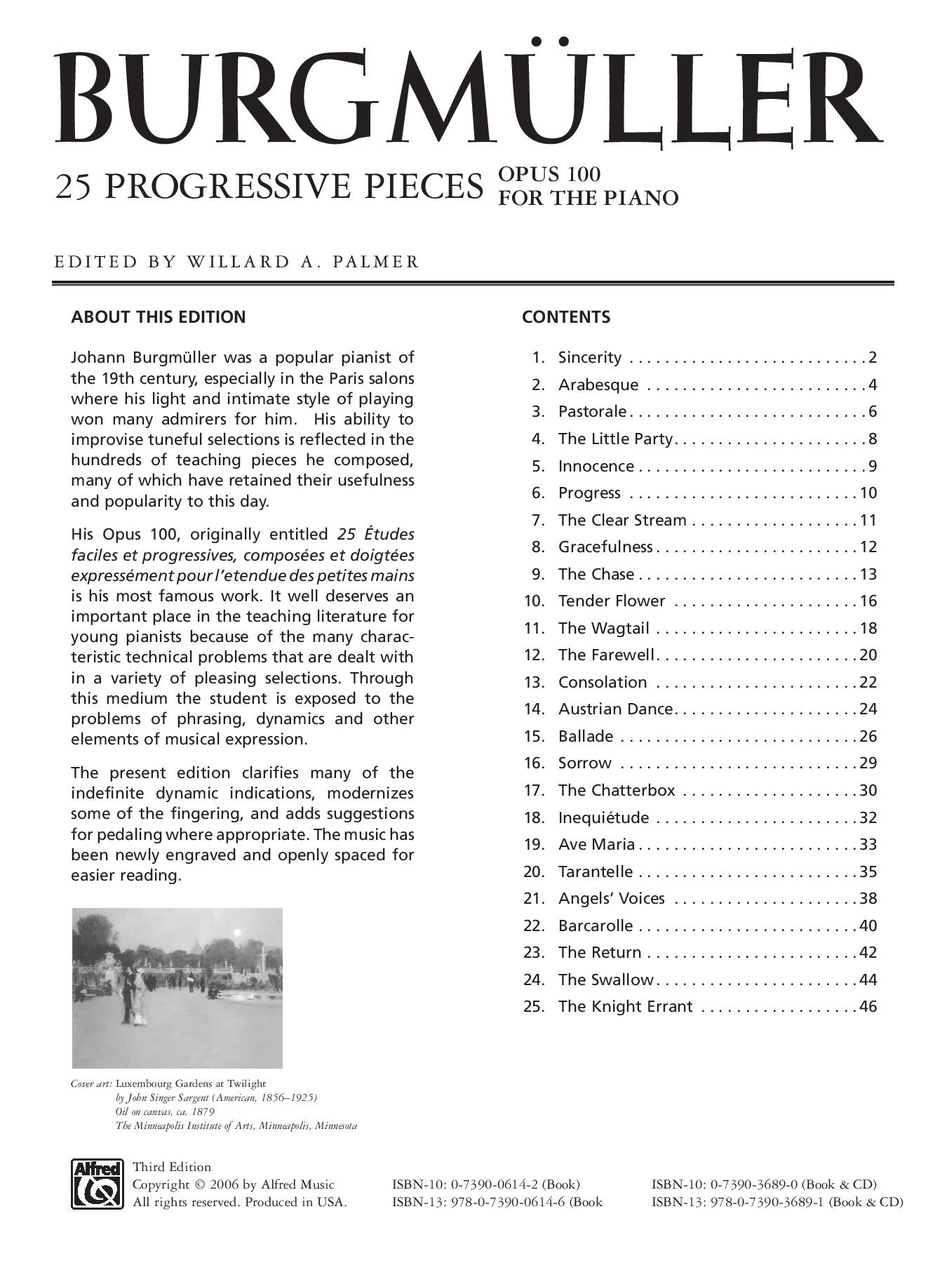 Burgmüller: 25 Progressive Pieces, Opus 100 for Piano Solo