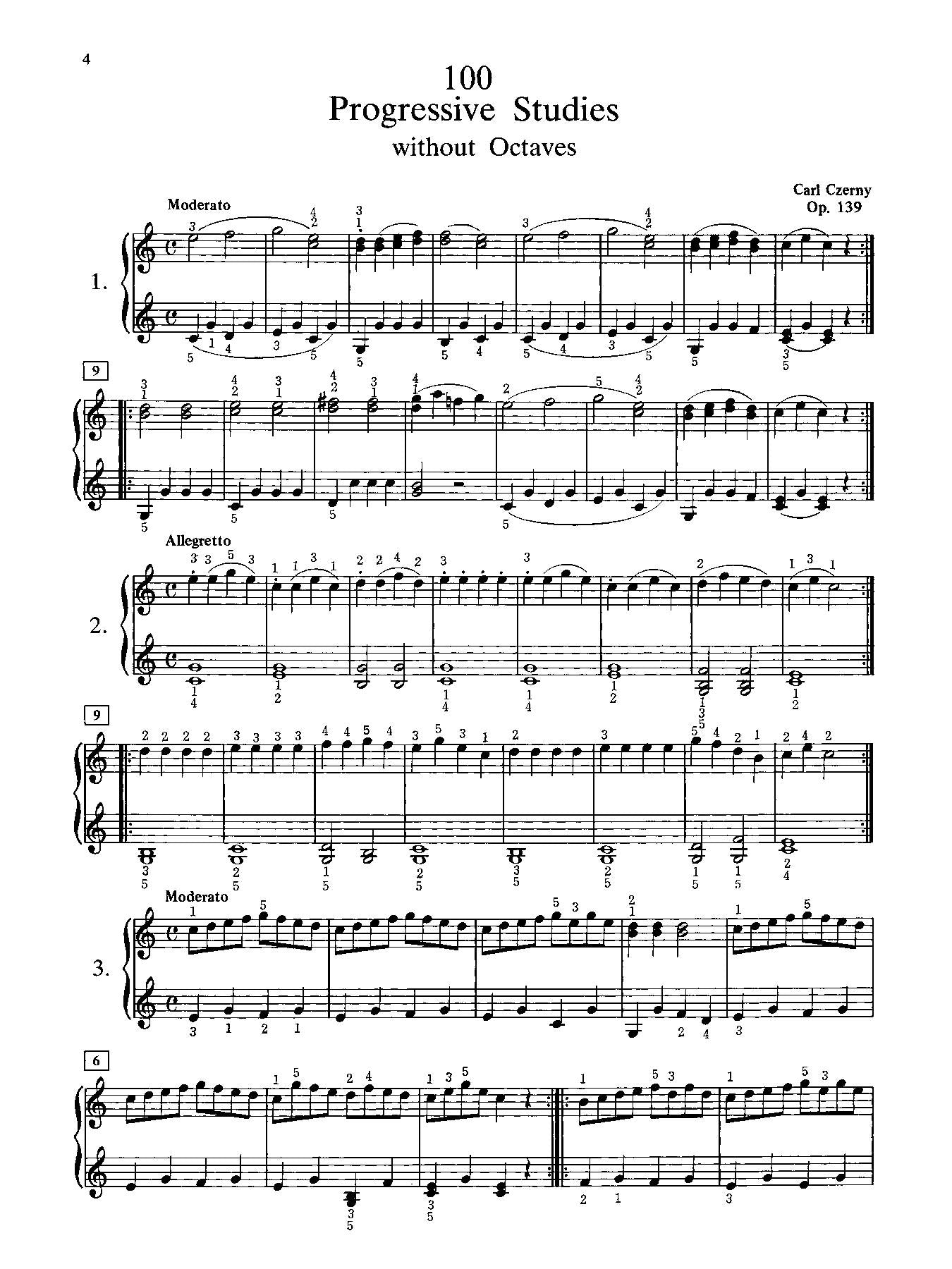 Czerny: 100 Progressive Studies without Octaves, Opus 139