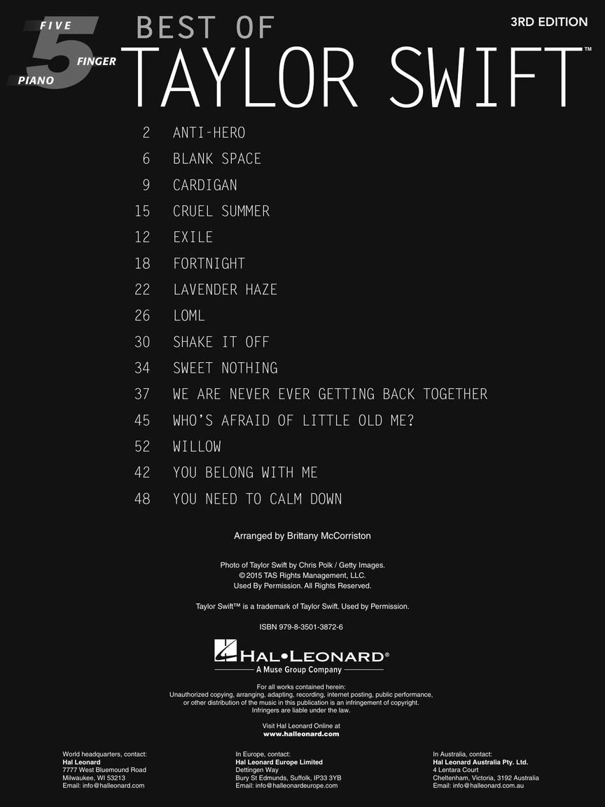 Browse our wide range of official Taylor Swift sheet music including accurate and easy arrangements for piano, guitar, voice, flute, clarinet, violin, cello, saxophone and more!
