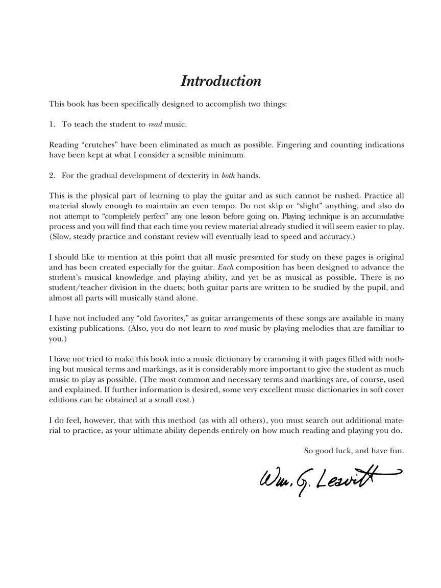 Optional online access contains audio and video produced by William Leavitt's students Charles Chapman and Larry Baione (who was his successor as chair of the Berklee Guitar Department), demonstrating the examples and providing play-along tracks for the ensemble exercises.