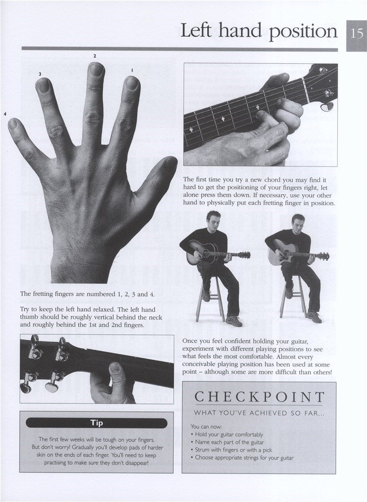 Provides the student with visual information on tuning, proper hand and finger positions, basic chords and transitions as well as how to accompany the CD to play songs. Includes photos.