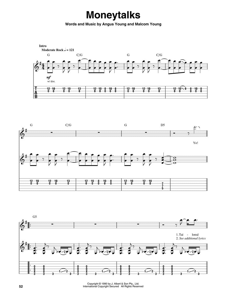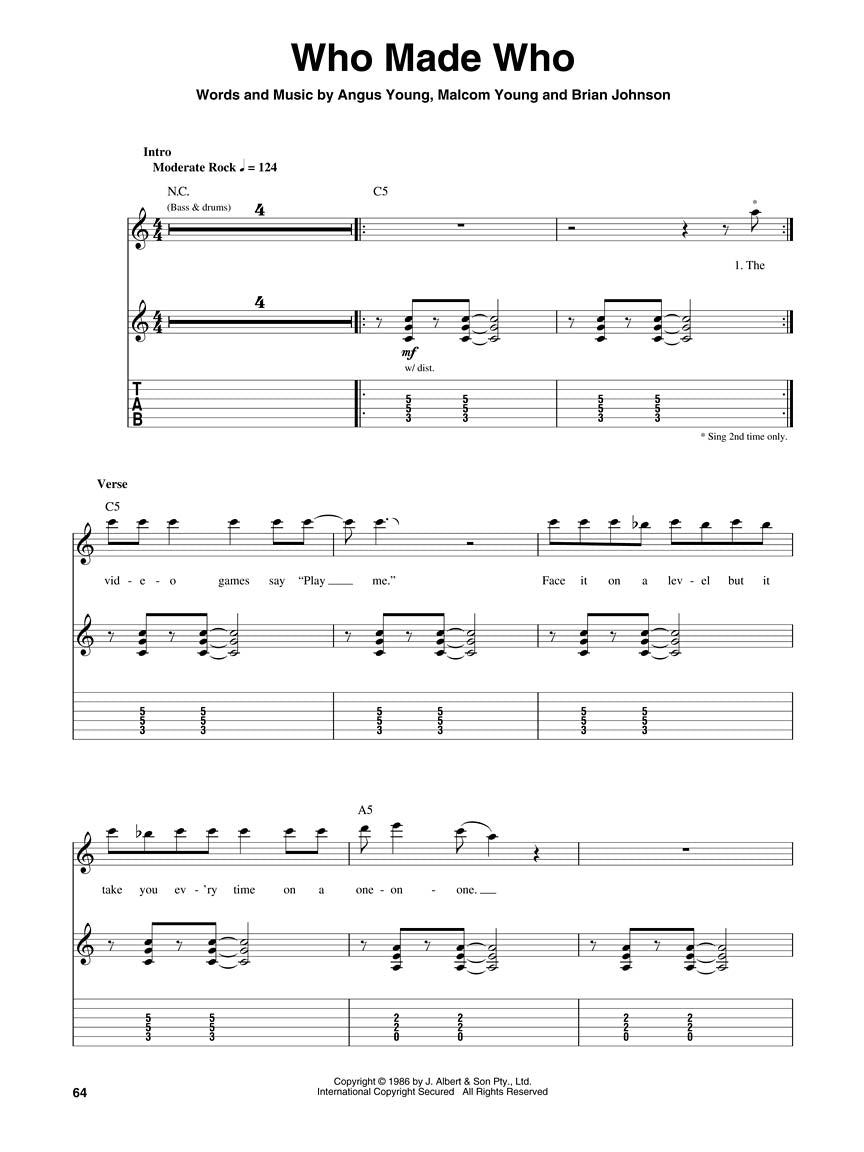 This pack includes 8 songs: Dirty Deeds Done Dirt Cheap • For Those About to Rock (We Salute You) • It's a Long Way to the Top (If You Wanna Rock 'N' Roll) • Let There Be Rock • Moneytalks • Thunderstruck • T.N.T. • Who Made Who.