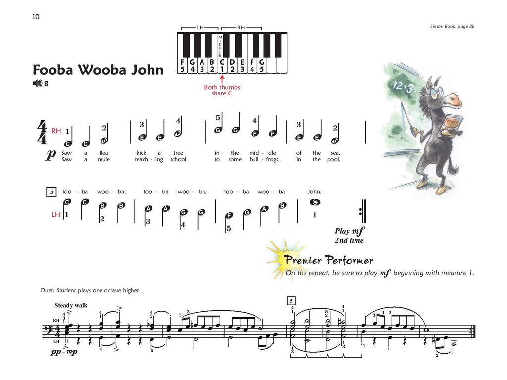 The appealing repertoire with charming lyrics further reinforces and enhances the learning of new musical concepts introduced in the Lesson Book. Includes attractive music created by internationally acclaimed composers in a variety of styles, plus tips on how to perform more musically. Each piece on the CD was recorded at a performance tempo and a slower practice tempo.