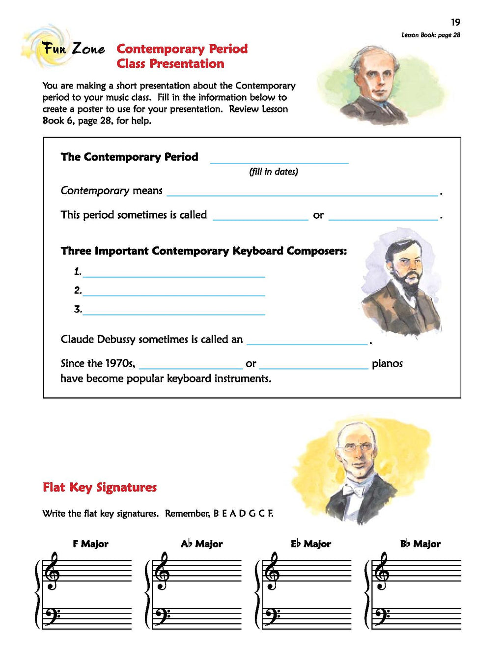 The activities in Theory Book 6 continue to develop the theoretical knowledge begun in previous levels of the course. A balanced mix of necessary drills with activities that stimulate creativity, including harmonization and composition, makes theory motivating and fun for students. Written theory is interspersed with activities that foster sight-reading and ear-training skills, while intriguing comments on music history and style reinforce the theoretical principles.