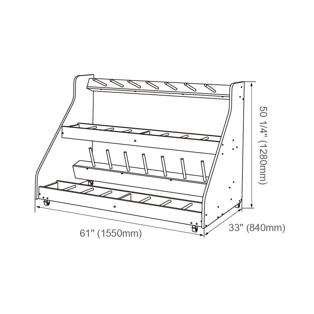 Racks have 2 1/2" (6cm) swivel casters with heavy duty rubber wheel for easy transport.