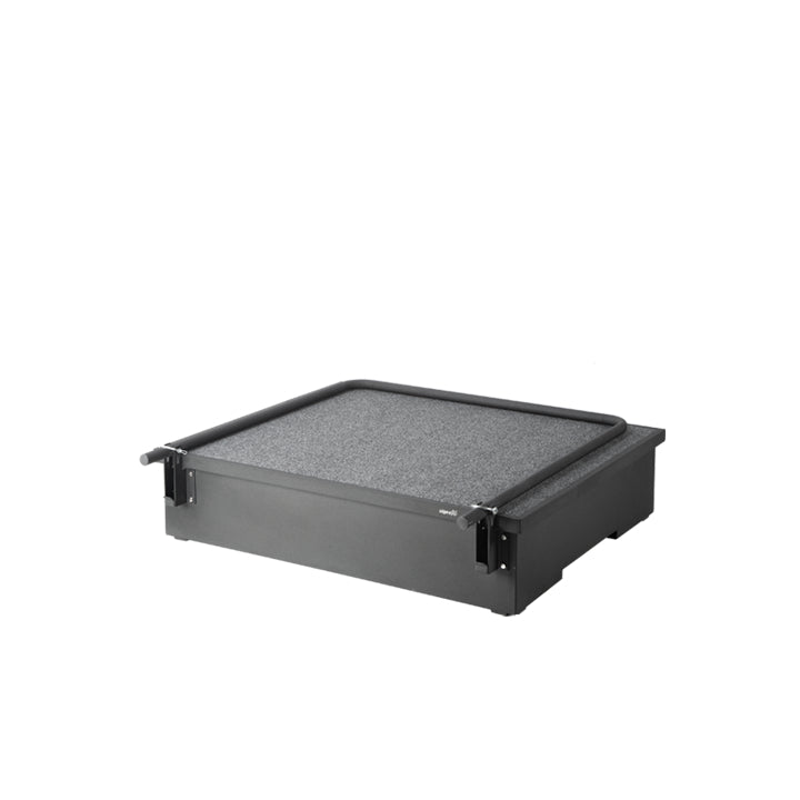 A high-quality handmade podium entirely designed for conductors and music leaders. Alges Signature Podium has a touch of class with a carpeted deck, detachable handrail, and integrated wheels for ease of transport and storage. The Signature Podium can be used with or without a chair.