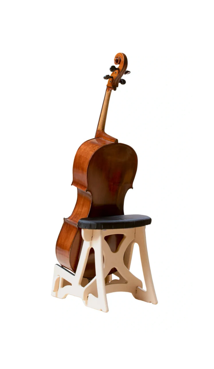 As a stand in the front and a chair in the back, the Amazing Cello Stand has rubber-coated edges to protect the instrument from damage when it needs it most. Turned around and used as a chair, it has a comfortable foam seat and is made of rugged MDF. Reduces player fatigue and minimises injuries from improper technique. It enables young performers to play comfortably. Designed and manufactured by RC Williams. Made in the U.S.A.