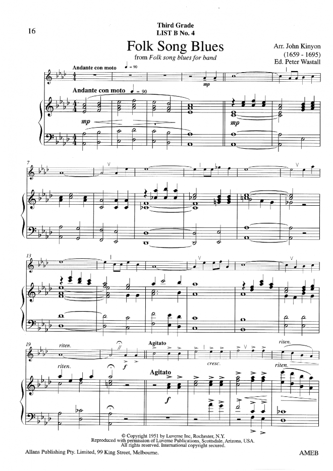 Carefully selected by top Australian Brass performers and pedagogues, the grade books feature a diversity of musical styles and often include works by celebrated Australian composers. Repertoire is carefully coordinated to align with the technical requirements at each grade level. Includes piano accompaniment.