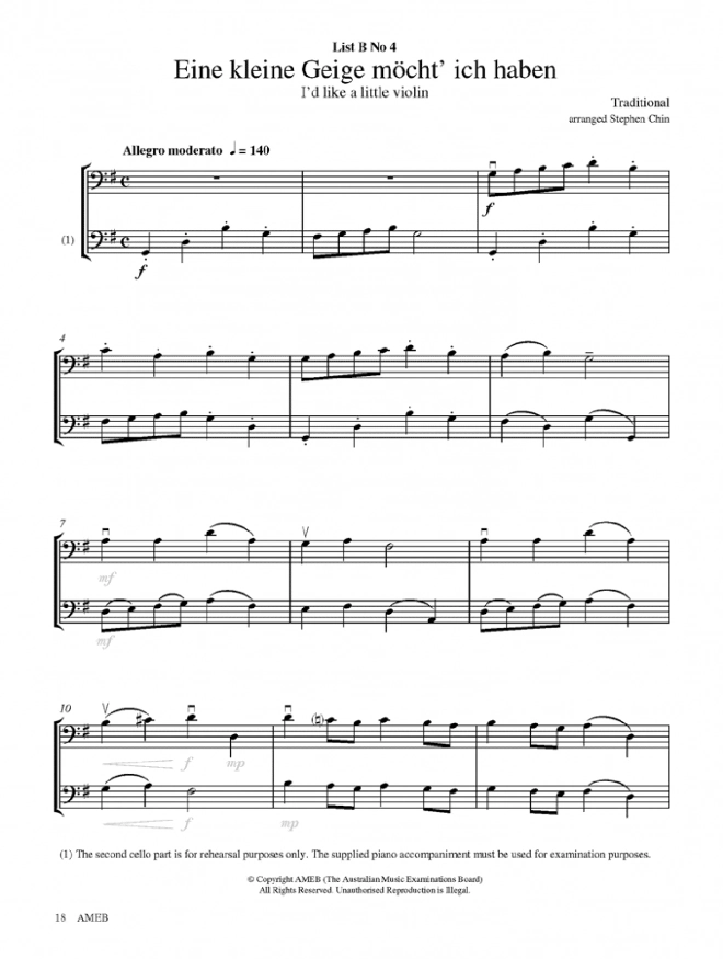 Collection of graded repertoire for AMEB Cello exams. Carefully selected by top Australian Cello performers and pedagogues, the grade books feature a diversity of musical styles and often include works by celebrated Australian composers. Repertoire is carefully coordinated to align with the technical requirements at each grade level. Includes piano accompaniment.