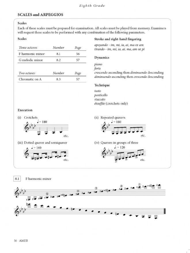 Contains all of the technical work required by the AMEB Classical Guitar Syllabus for examinations from Preliminary to Eighth Grade. The Technical Work book features fully-notated scales, arpeggios and technical exercises in a logical and convenient layout.