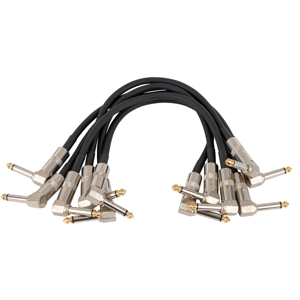 AUSTRALASIAN - Rock Leads 1 foot patch cable. 6mm O/D straight cable. 2 x chrome plated right-angle jacks with gold tip. Heat shrink strain relief. Black. (Sold individually).