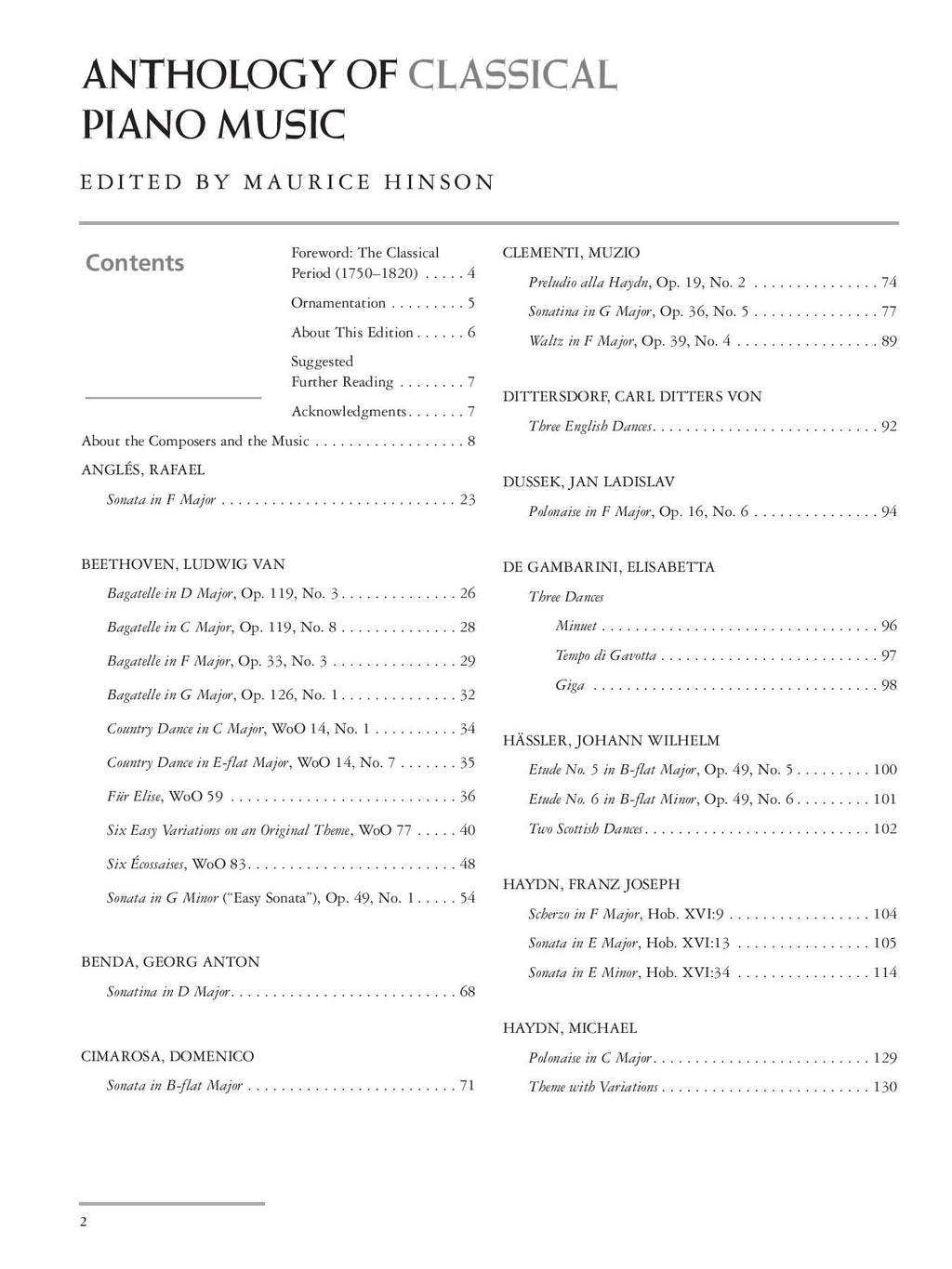 Works by 27 composers are included in this 248-page comprehensive survey of piano music written between 1750 and 1820. The pieces in this collection range in difficulty from intermediate through early-advanced levels and cover the widest range of styles and idioms of the Classical period. Historical and biographical background, performance notes and suggested realizations of ornaments are also provided by Dr. Hinson. The comb binding creates a lay-flat book that is perfect for study and performance.