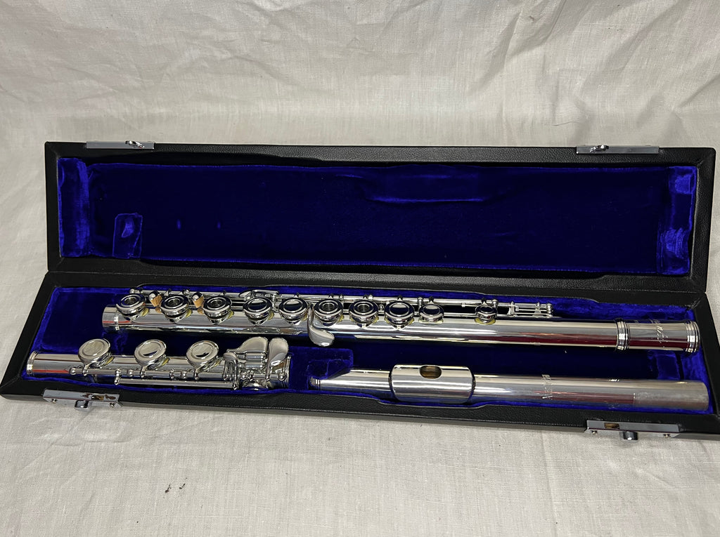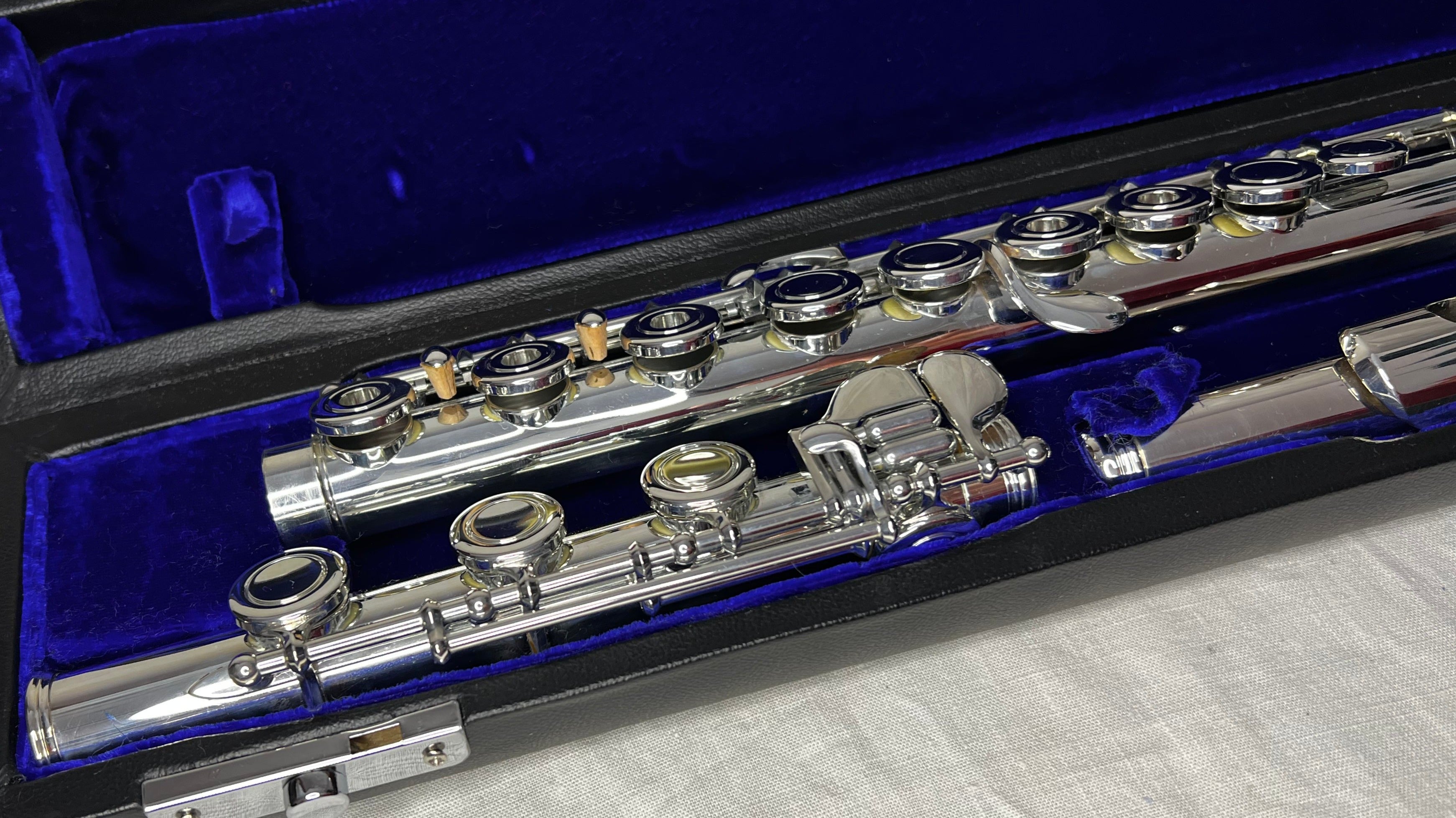 Avanti 1000BIF USA professional flute. Designed by Bickford Brannen Hand-cut Sterling Silver Avanti-Brannen headjoint Open hole Inline G/A B foot Silver plate finish bottom adjusting mechanism Also available with C# trill key and E disc.