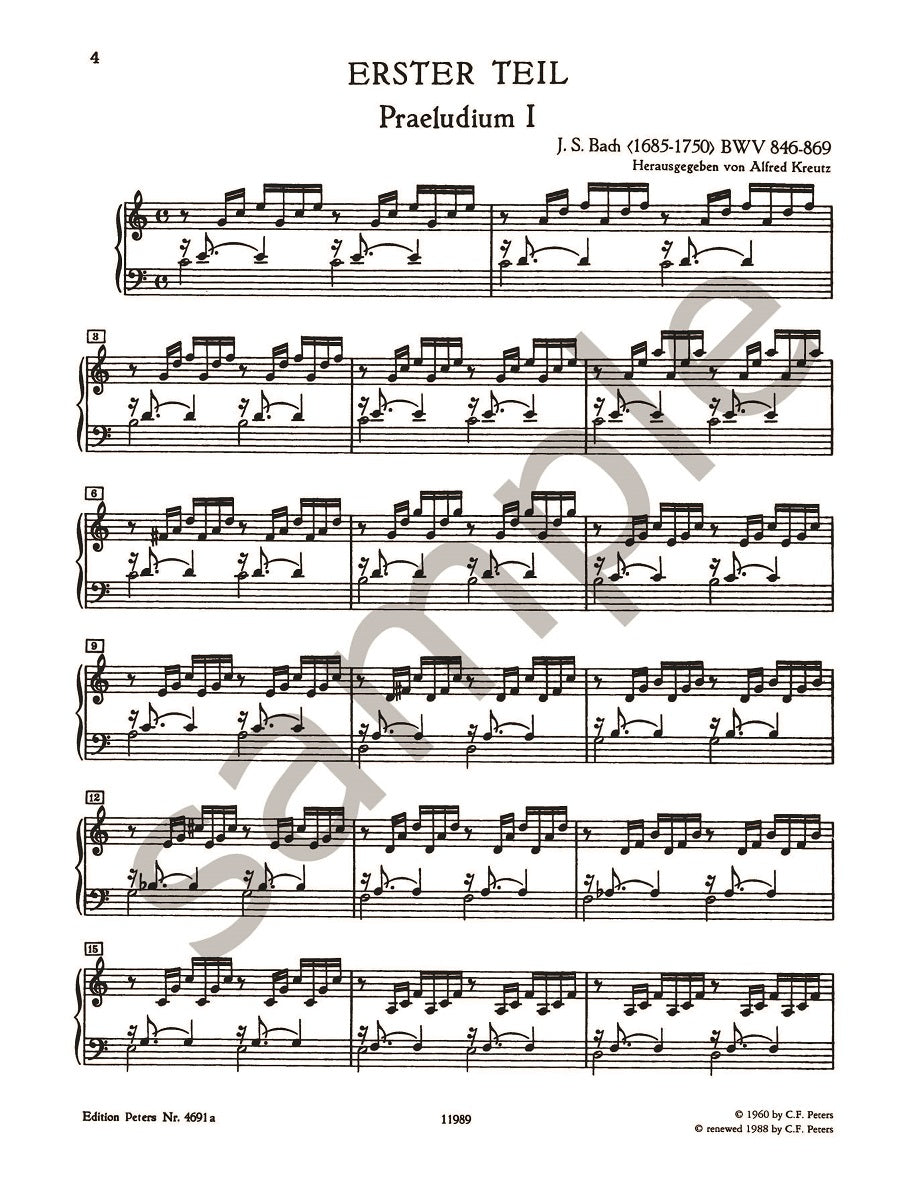 Volume 1 of the Well Tempered Clavier contains the first 24 Preludes and Fugues BWV 846-869. Edited by Alfred Kreutz. Published by Edition Peters.