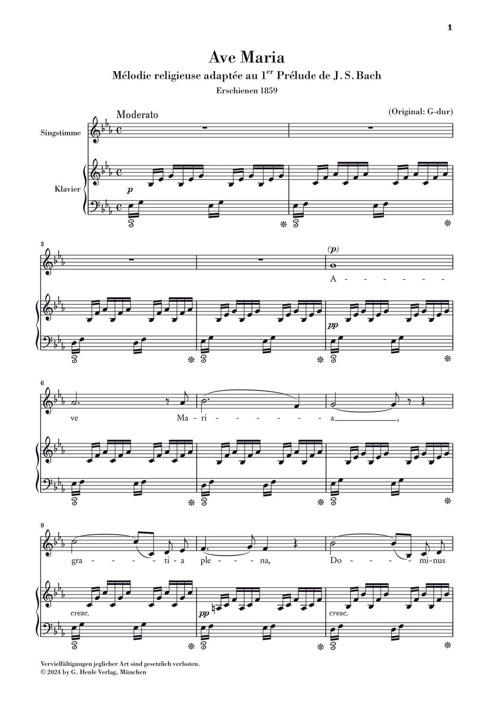In 1859, at the same time as the original edition for high voice, editions for middle and low voice, presumably commissioned by the publishers, were also issued. Following this model, the Henle Urtext edition of “Ave Maria” is also offered in two transpositions for the lower register.