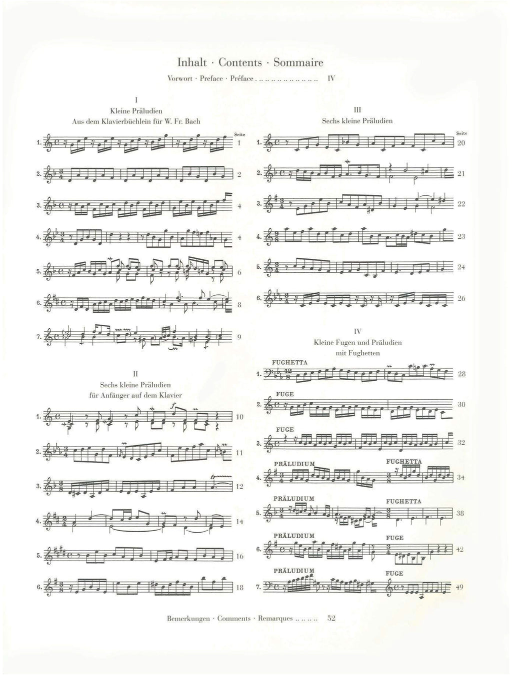 This edition with over 50 pages contains the universally known selection of easy preludes and little fugues that has proved extremely successful in teaching the piano. Bach’s sons, with Wilhelm Friedemann and Carl Philip Emanuel leading the way, were already able to learn them. If you make your way through these pieces (which gradually become more challenging), you can make great progress on the piano, and what is more these 300-year-old compositions are still able to work their musical magic. Those who are technically more advanced should still occasionally sight read through them; you will then immediately see that they are real gems. Incidentally, all of Bach’s piano works are available from Henle both with and without fingerings.