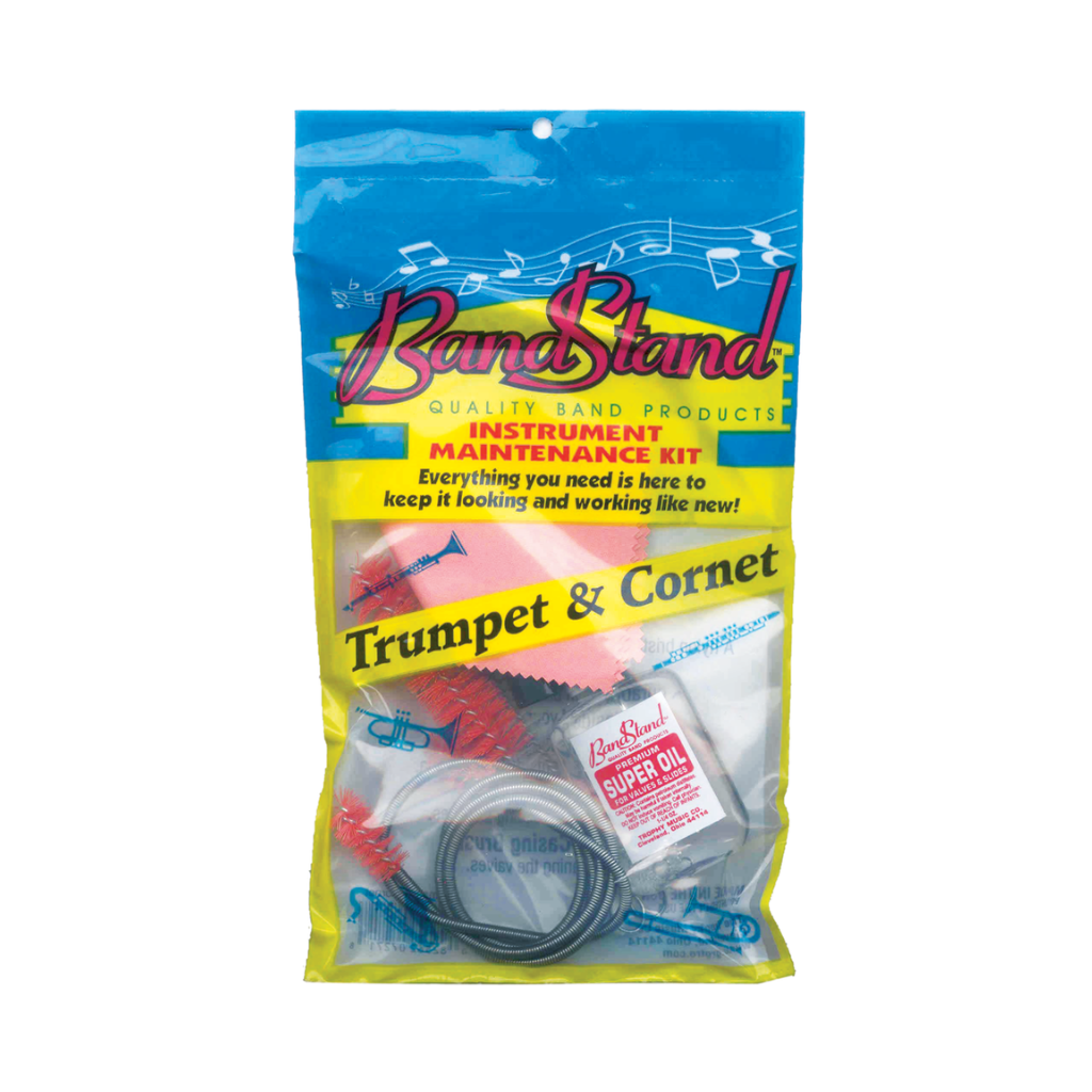 Trumpet/Cornet maintenance kit. Contains Super Oil for valves, slide grease, flexible bore cleaner, mouthpiece and valve casing brushes and polish cloth.