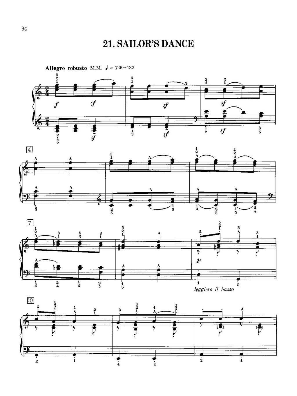 Selected from the two volumes of Bartóks For Children, these 42 works were written without octaves to fit the hands of younger players. Each piece has a descriptive title, with half including the words "song" or "dance". Like much of the composer's writing, the pieces directly reflect the use of folk idioms.