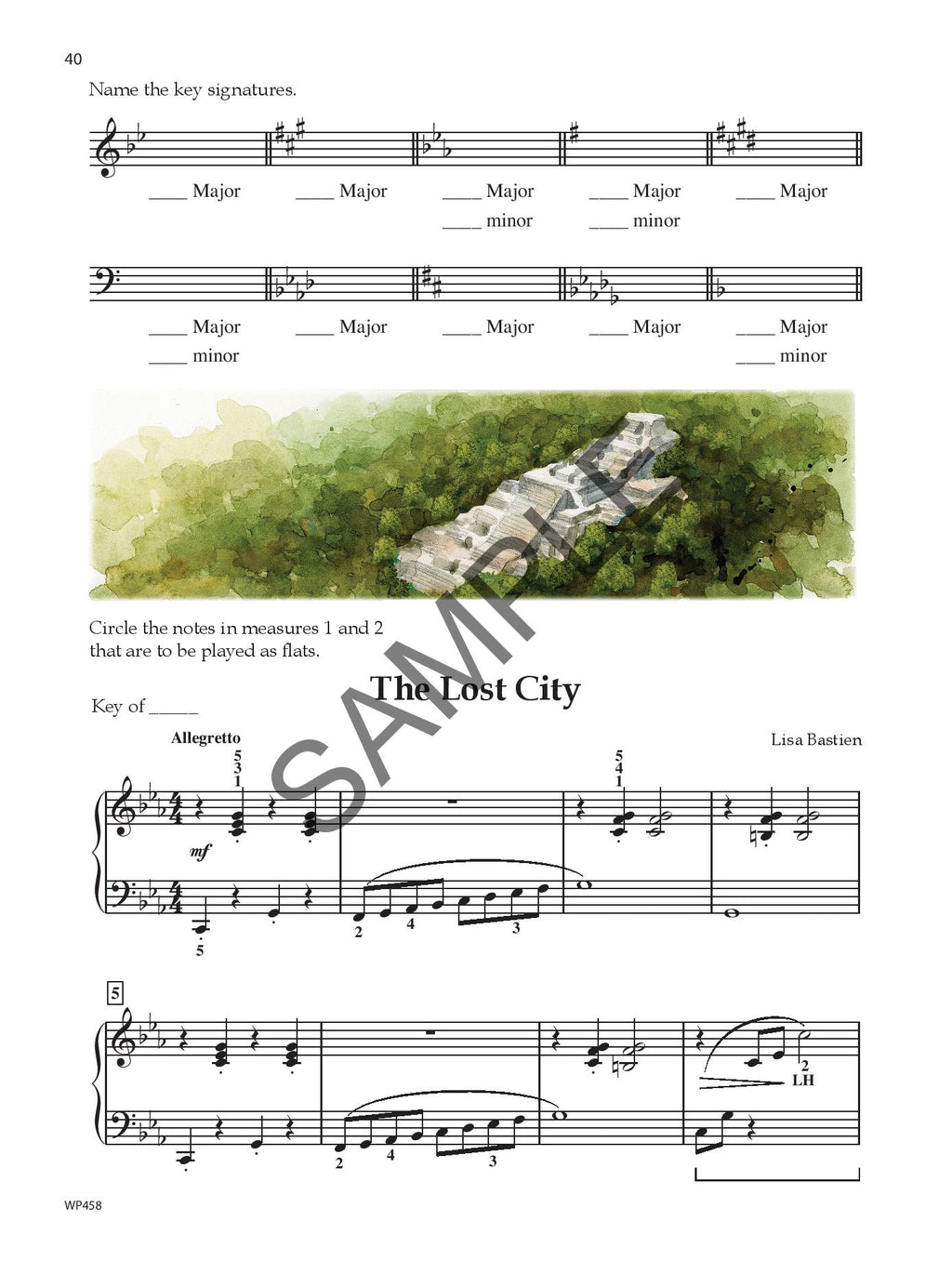 Bastien New Traditions is a comprehensive and integrated method for beginning piano study that is easy to use and paced just right for today’s busy students. Concepts are presented in a holistic way, with lesson, theory, and technic pages mixed with attractive performance pieces all in the same volume. A gradual multi-key approach is used allowing students to experience complete keyboard knowledge. There is a clear step-by-step presentation of concepts and skills with straightforward, simple reinforcement and review throughout the series. The learning sequence is carefully graded to ensure steady progress, and students will love the selection of music as well as the beautiful watercolor illustrations.