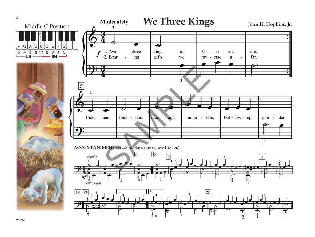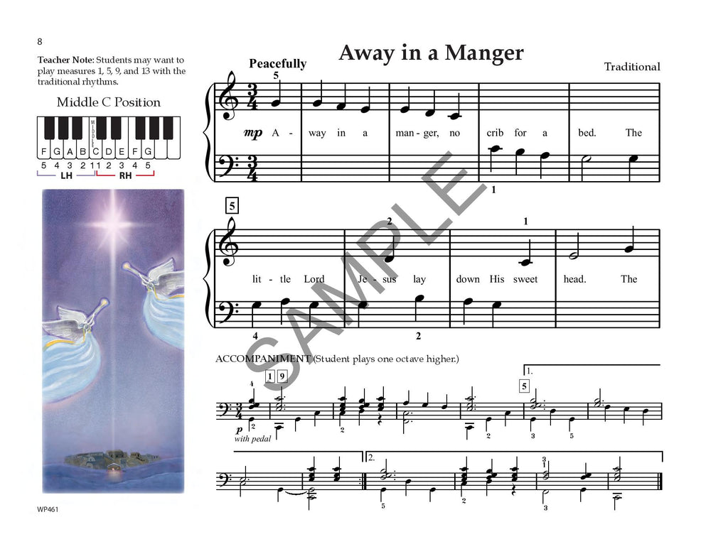 Christmas Classics are collections of timeless (and most requested) traditional carols that students are sure to enjoy and cherish throughout the holiday season! Each book of arrangements are designed to go along with the corresponding levels of the Bastien New Traditions All-In-One Course, or the comparable level of any (similar) piano course. In each book, the carols appear in progressive order of difficulty. Duets for each carol (Primer A, Primer B and Level 1 only) provide students with wonderful ensemble playing opportunities. The duets offer a rhythmic foundation for student beginners and may be played by the teacher, a student’s parent or sibling, or a more advanced student. Holiday-themed activity pages are woven into each book to provide fun review and reinforcement of beginning concepts. Gorgeous, full-color illustrations enhance the student experiences.