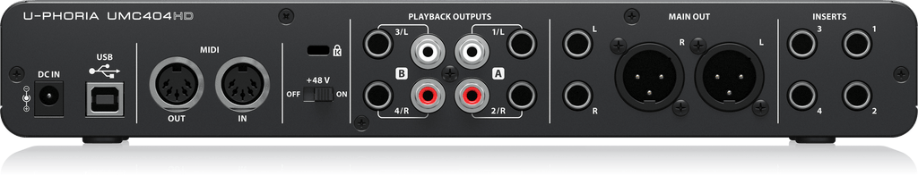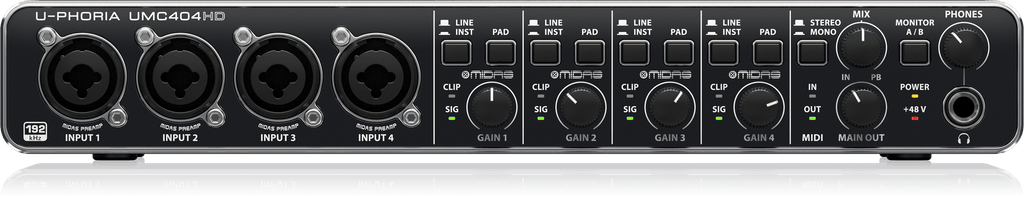 Studio in a Little Black Box When it’s time to make recording history on your Mac or Windows computer, plug in microphones, instruments or line level sources to the UMC404HD’s 4 combination XLR/TRS inputs for the ultimate in studio flexibility! Connect and communicate with MIDI devices to add the benefit of control surfaces to your studio workflow.
