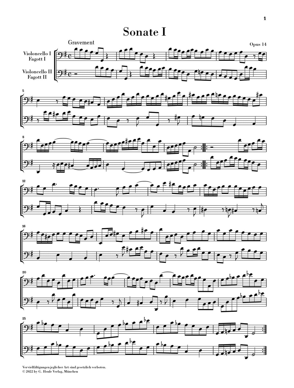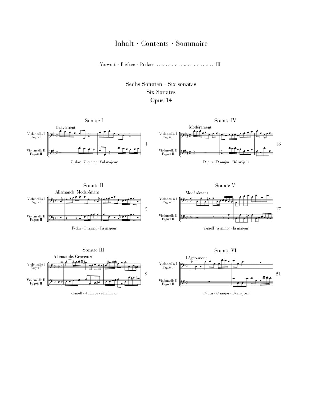 Joseph Bodin de Boismortier was highly successful in his lifetime, but many of his more than 100 works are forgotten today. His Duo Sonatas for string or wind instruments, however, continue to enjoy great popularity, especially among teachers and their students. With these Six Sonatas op. 14, G. Henle Verlag is expanding its repertoire of technically-easy string chamber music, and also invites bassoonists to engage with these delightful French Baroque pieces.