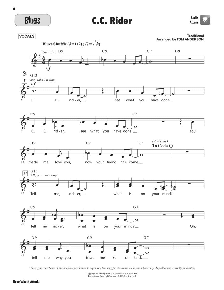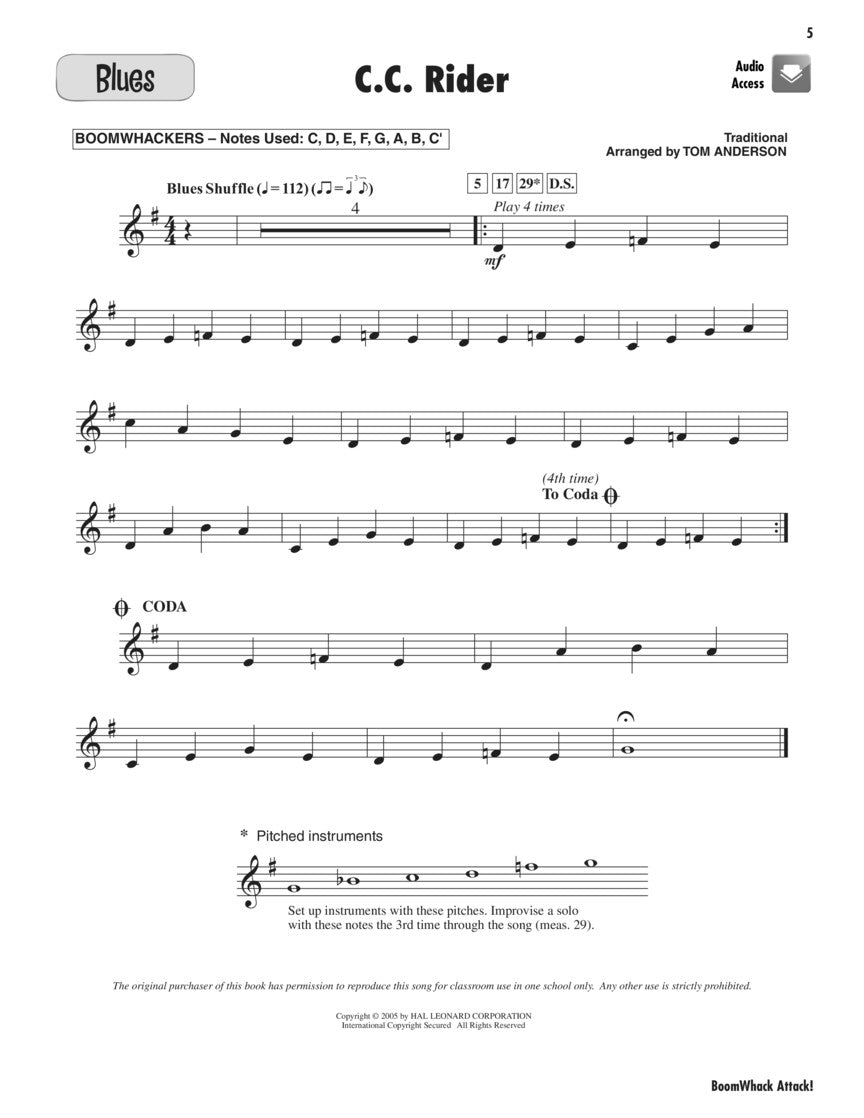 This fun-filled collection includes whacky one-of-a-kind arrangements of favorites like “Rockin' Robin,” “C.C. Rider” and more presented in a variety of styles for hours of music fun. This clever collection of ten songs for students in Grades 3-6 comes complete with reproducible Boomwhacker parts, vocal leadsheets with chord symbols, and a performance/accompaniment recordings for added play-along excitement. All you need is a C Major Diatonic Scale set of Boomwhackers®. Whether in the classroom, performing “Pomp and Circumstance” at graduation, saying goodbye with “Jamaica Farewell” or singing from “Up on the Housetop,” these songs will be a hit for all ages!