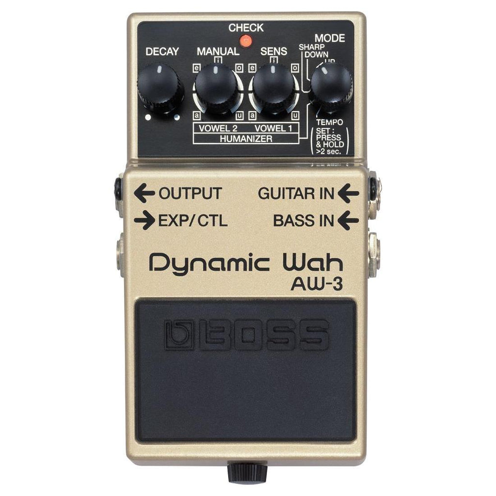The BOSS AW-3 Dynamic Wah pedal gives guitarists a wide range of classic auto-wah and dynamic wah effects, plus a new "Humanizer" effect which can simulate human vowel sounds. A Bass input provides a variety of funky wah sounds for bass guitar.