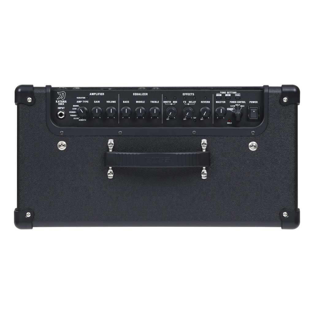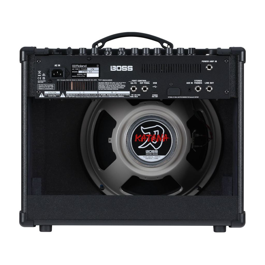 The Katana-50 EX Gen 3 model extends the core features of the Katana-50 Gen 3 with enhancements for live performers. Additions include an upgraded speaker, Line Out and Stereo Expand functions, and GA-FC/GA-FC EX Foot Controller support.