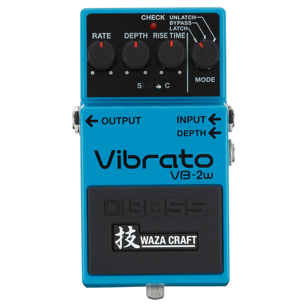 The Boss VB2W vibrato pedal revolutionizes your tone-bending experience with multiple modes and all-analog circuitry. Give your favourite tunes a completely individualized tone with Custom mode, or go retro with the Standard mode's classic VB-2 vibrato. Bring extra emotion to a standout chord with Unlatch mode, which applies a vibe only when you press the pedal. Clearly marked knobs control rise time, rate and depth, so you can make lighting-fast shifts to suit any venue.