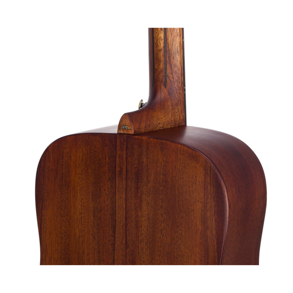 The BAR1H Dreadnought Acoustic Guitar has a solid spruce top, Mahogany neck, back & sides, Amara Ebony fingerboard, genuine Bone nut and saddle, and comes with a padded heavy duty gig bag. Satin, historic finish.