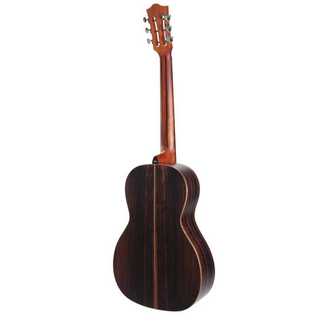 The BAR6E Parlour Electric Acoustic Guitar has a solid A-grade red cedar top, slotted headstock, Amara Ebony back, sides, and fingerboard, and comes with a padded heavy duty gig bag. Natural finish. Also has Fishman Sonitone pickup system with: