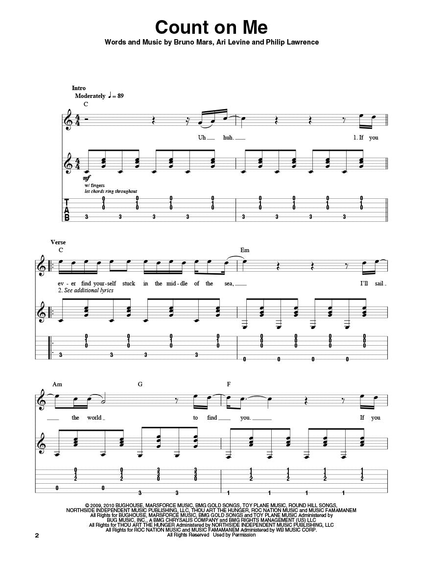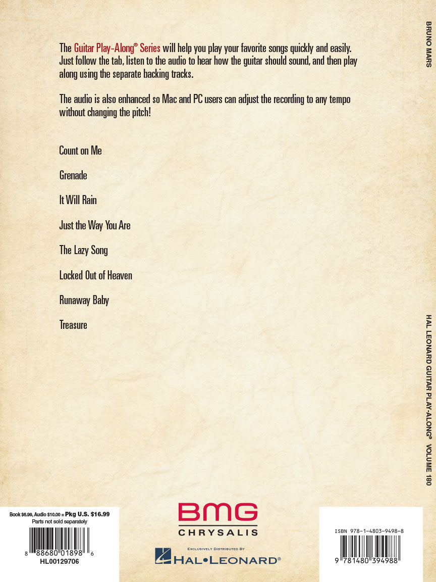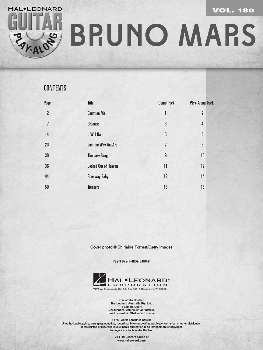 8 songs: Count on Me • Grenade • It Will Rain • Just the Way You Are • The Lazy Song • Locked Out of Heaven • Runaway Baby • Treasure.