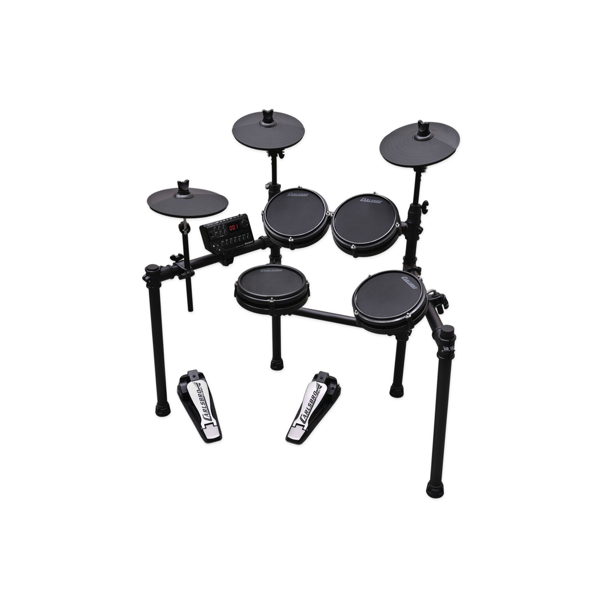 The CSD25M electronic drum kit is designed with 3x 10” cymbals with an advanced noise reducing soft touch rubber padding. Both Crash and Ride cymbals include a cymbal choke feature.