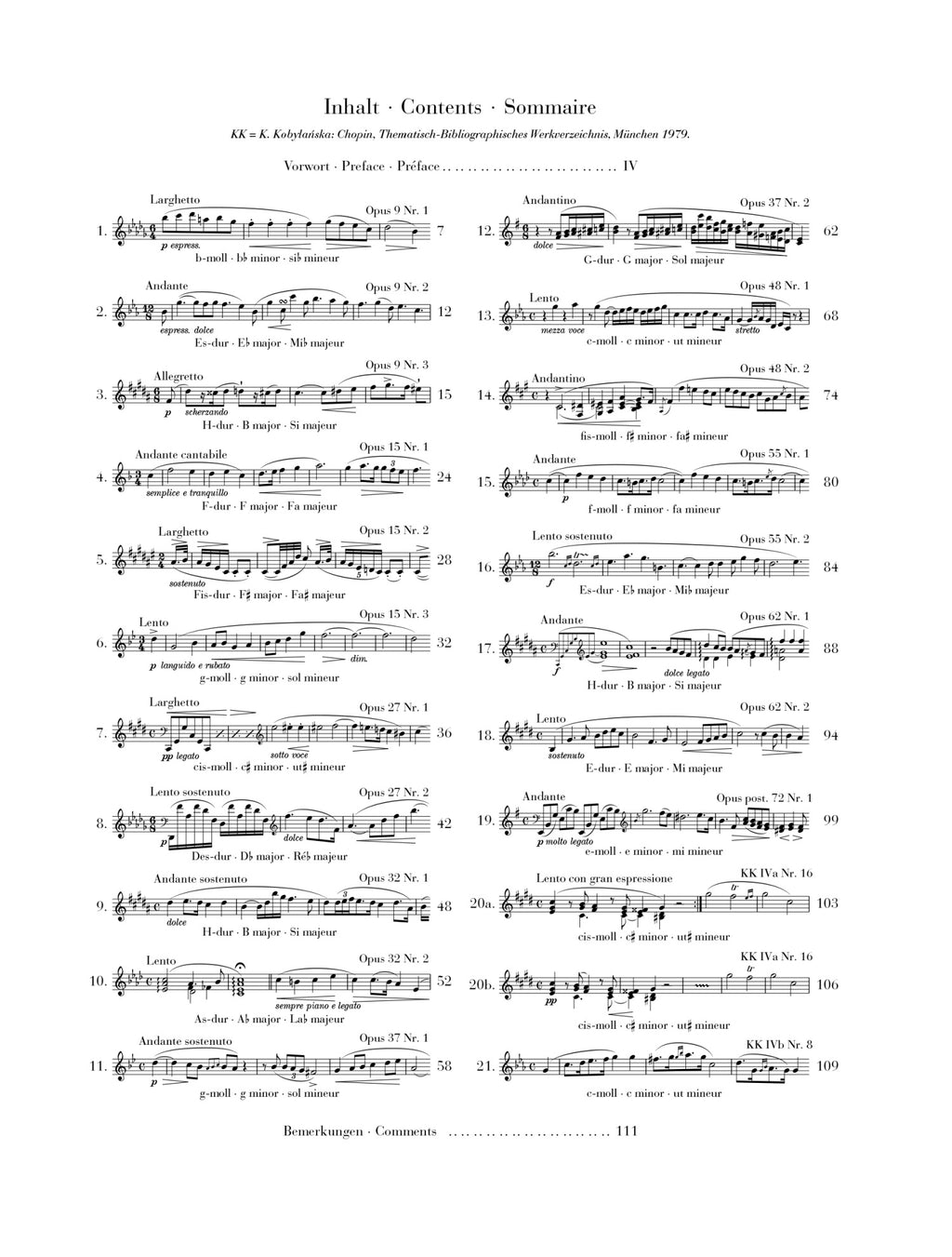 Time and again, Chopin succeeded in giving different piano music genres their own individual characters, whether etudes, preludes, waltzes, scherzi or nocturnes. The Irishman John Field had already composed over 20 nocturnes, which presumably greatly influenced Chopin. The latter continued to develop the light, song-like piano writing and created works whose dreamy, longing atmosphere came to embody Chopin’s music. Our volume contains the works that were published during Chopin’s lifetime as well as ones which were only published posthumously, including the famous Lento con gran espressione in c sharp minor – in two authentic versions.