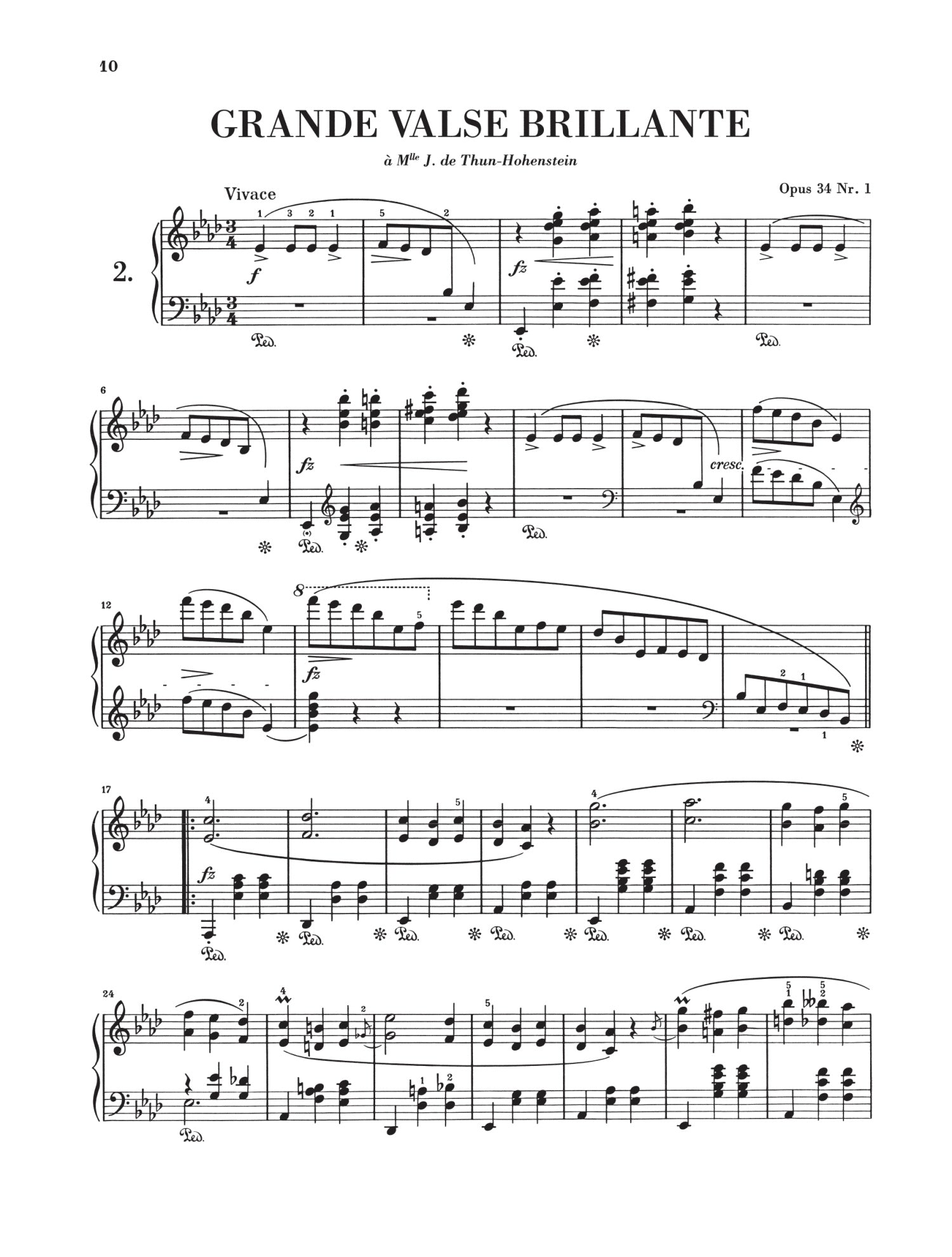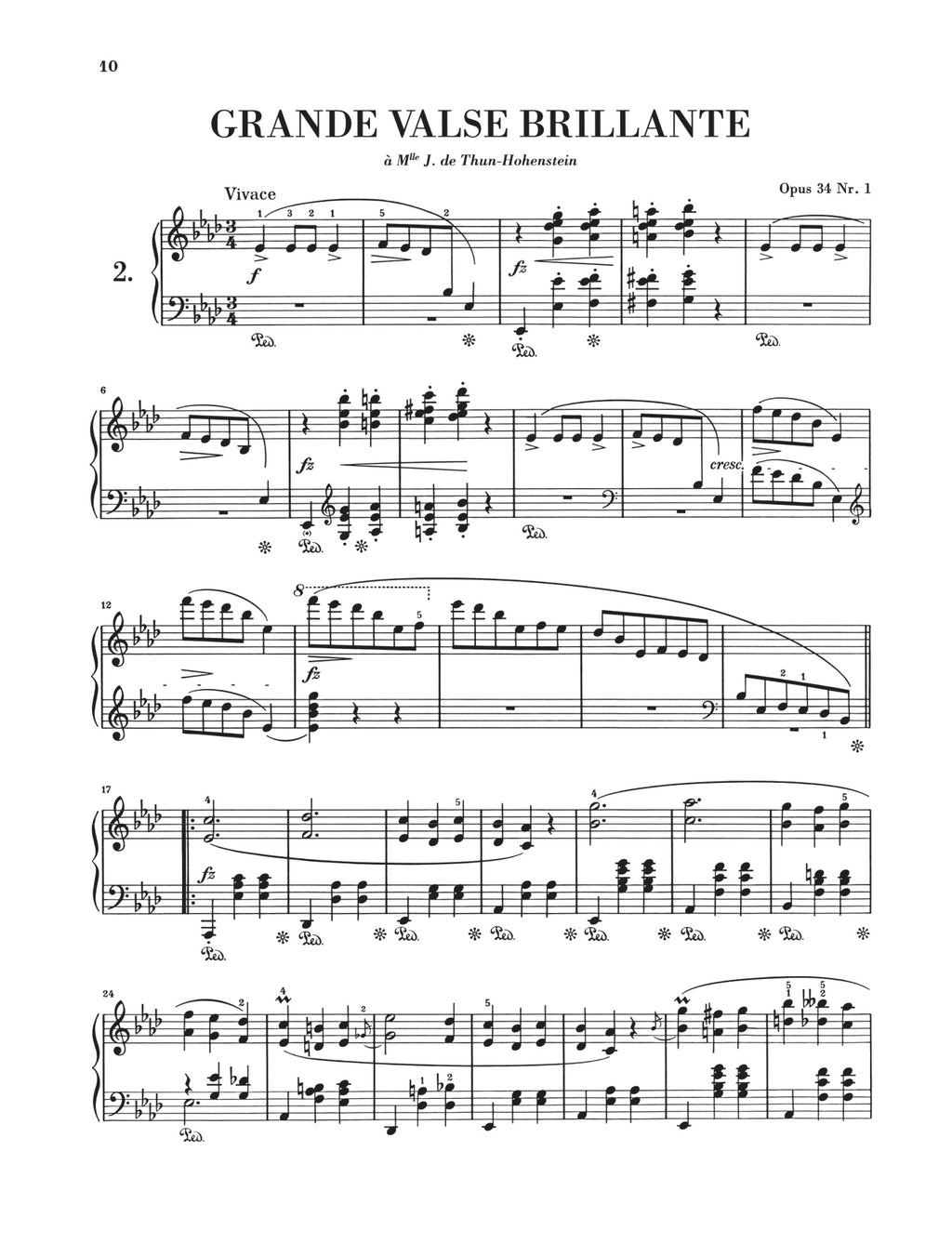 Chopin revolutionized the etude – but he ennobled the waltz. He spent much time on this genre throughout his life and created a wide spectrum of forms, from virtuosic showpieces – the Grandes Valses Brillantes – to deeply melancholic atmospheric pictures. All these works have one thing in common: one cannot and should not dance to them! Our volume contains all of the waltzes that were published during Chopin’s lifetime, or posthumously, including popular masterpieces such as the so-called “Minute Waltz” (op. 64 no. 1). In cases where two authentic versions of the same waltz have been transmitted, we naturally give the Urtext of both versions.
