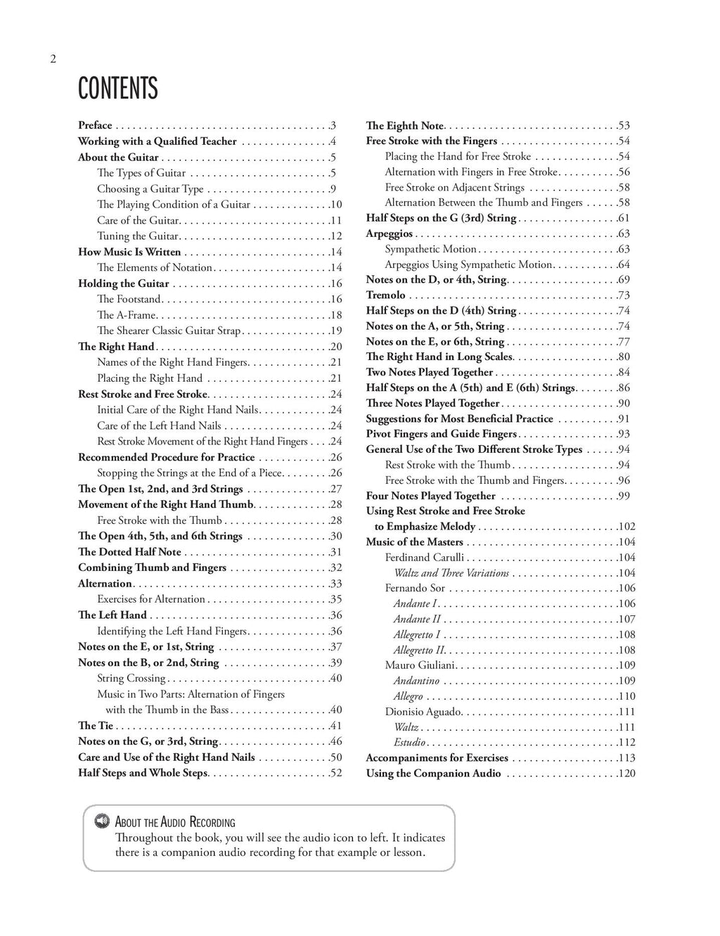 Aaron Shearer's Classic Guitar Technique has long been the core method used by generations of classic guitarists. Alfred Music is proud to present the third edition, and first major revision, of Volume 1 of this benchmark work. Completely re-edited and updated in collaboration with Thomas Kikta (one of Aaron's former students and the head of Duquesne University's Classic Guitar Department), the third edition maintains the character and appeal of the original book while providing new critical insights into core techniques that had not been addressed in previous editions. Also, for the first time, companion online audio recordings are included with the book, providing demonstrations, play-along tracks, and duet opportunities to ensure students correctly emulate the tone and feel of the music.