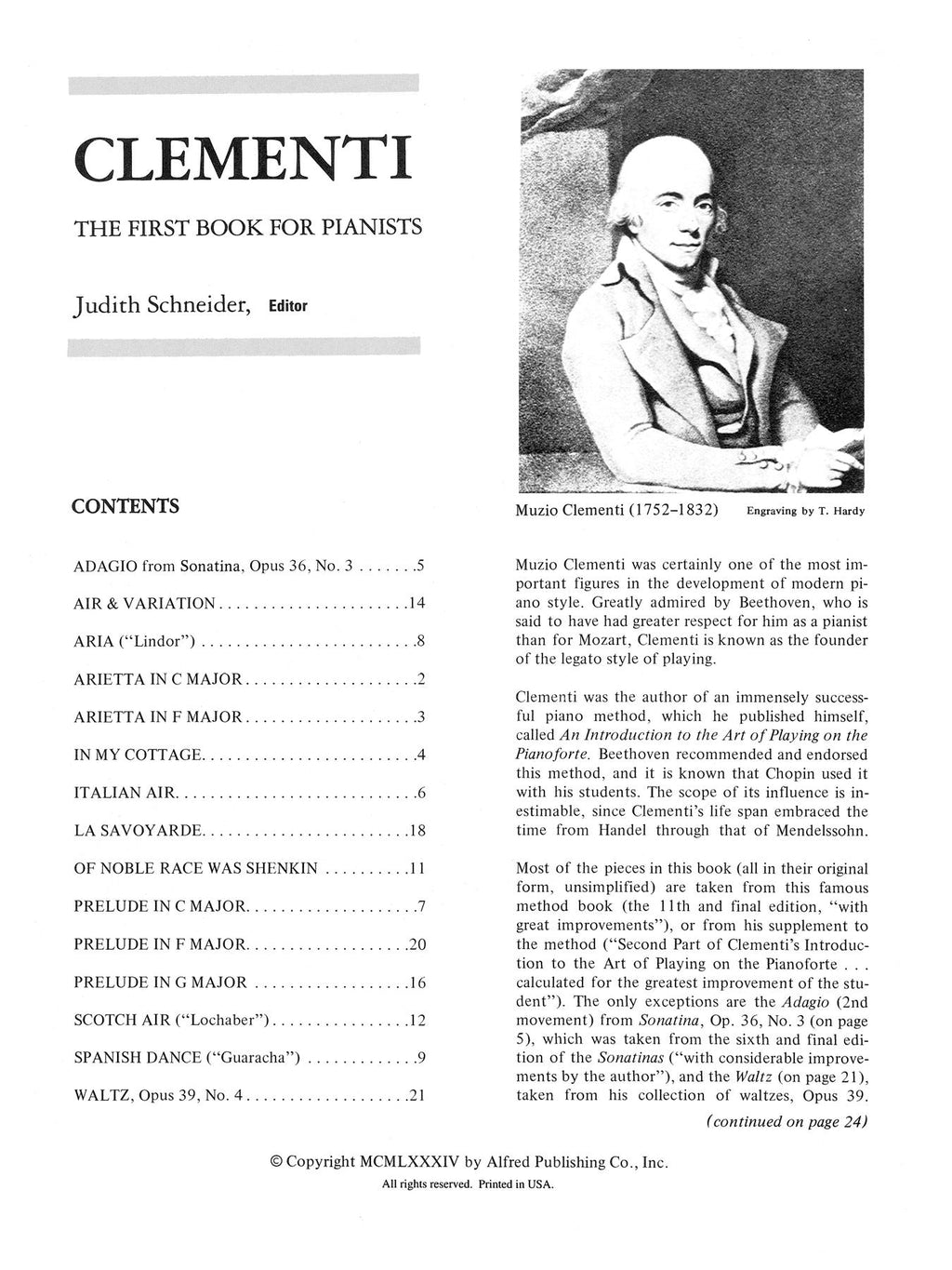 By Muzio Clementi / ed. Judith K. Linder Schneider