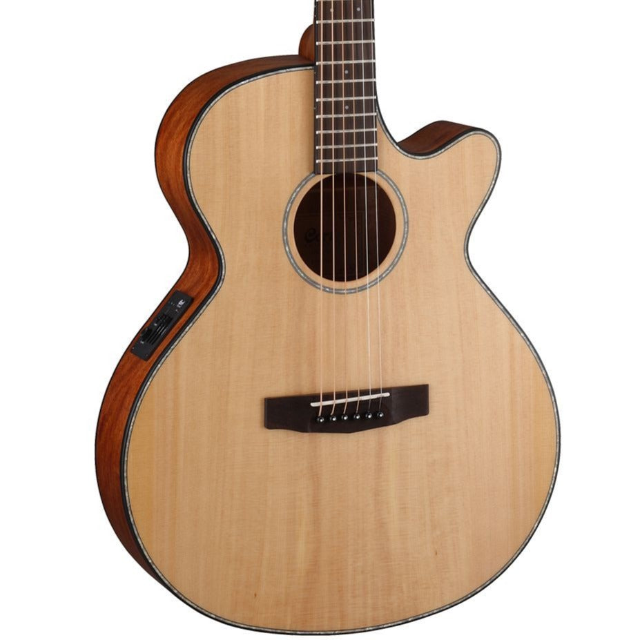 As Cort’s vision of the modern acoustic-electric, the SFX Series features Cort’s own slim body shape (83*83mm) with cutaway, modern V-shape neck profile for enhanced playability and speed, arched back for improved resonance, jumbo frets and electronics. SFX-E features a Solid Spruce top, Mahogany back and sides, Ovangkol fingerboard.