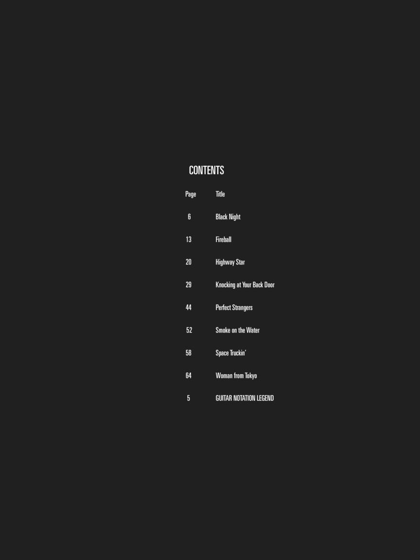 8 songs: Black Night • Fireball • Highway Star • Knocking at Your Back Door • Perfect Strangers • Smoke on the Water • Space Truckin' • Woman from Tokyo.