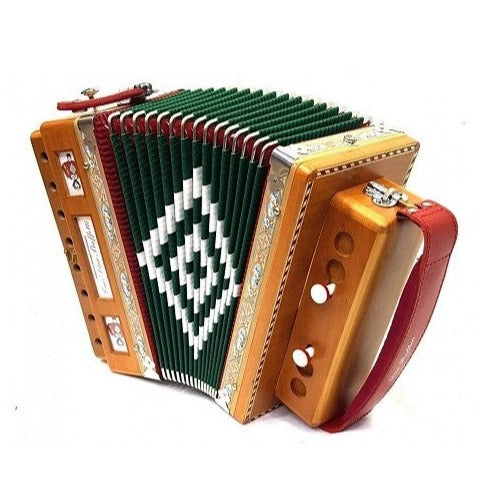 Brand: Dino BaffettiModel: Art. 25Type: Diatonic Button AccordionReeds: 3/4 LMMTreble: 12 Keys, 7"(17.75cm) Key to Key, 1 RegisterBass: 2 Bass Buttons, 0 RegistersWeight: 2.35kgFeatures: Key of G, Switch Between MM and LMMIncludes: New Straps and Case, 1 Year Factory Warranty