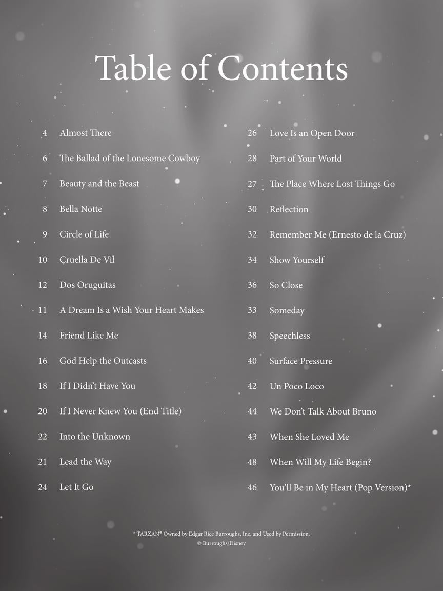 This collection features 30 Disney favorites arranged for 10-, 11-, or 12-hole ocarinas. Songs include: Beauty and the Beast • Circle of Life • Dos Oruguitas • Friend like Me • Into the Unknown • Let It Go • Reflection • Remember Me (Ernesto de la Cruz) • We Don't Talk About Bruno • When Will My Life Begin? • and more!