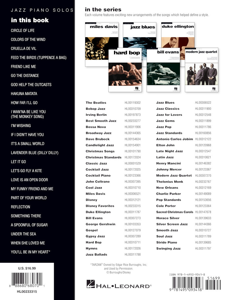 25 Disney classics in jazz-flavoured piano solo arrangements with chord names.