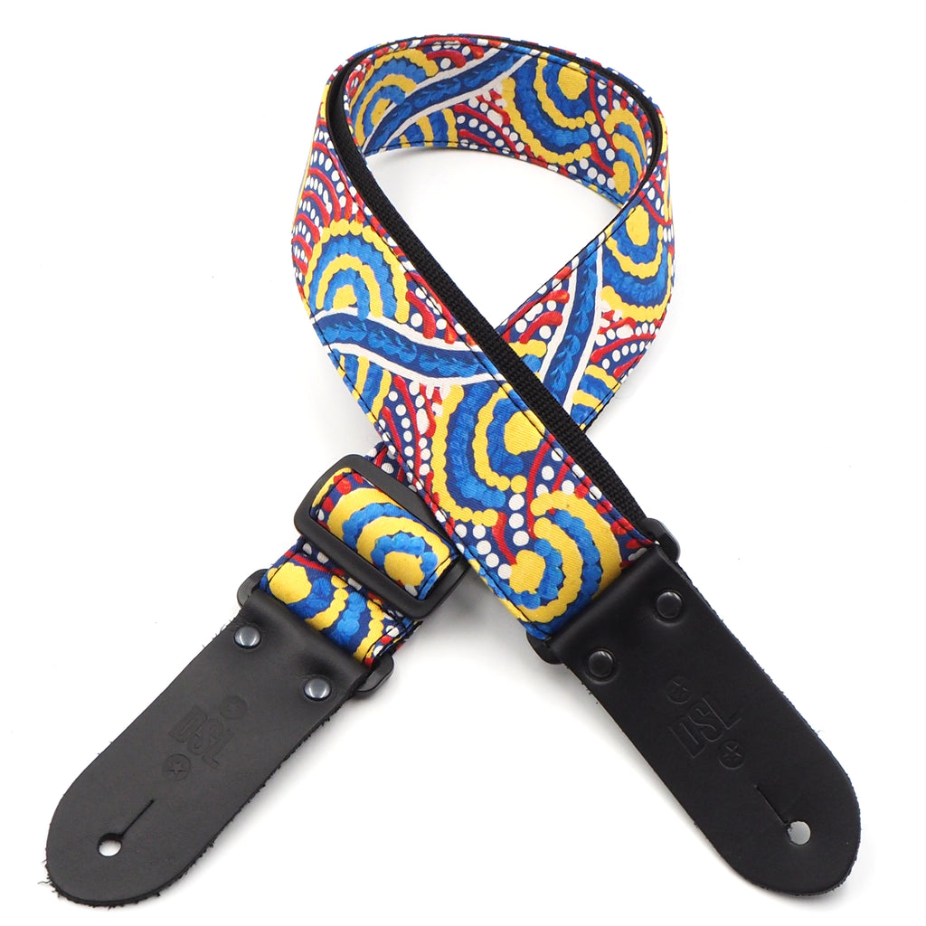 These exciting new Indigenous designs come with a comfortable 2-inch width and high-quality fabric with a little padding. All DSL straps are handmade in Australia. Every Indigenous strap also comes with a card explaining the artwork and the artist—a really nice touch that adds meaning and authenticity!