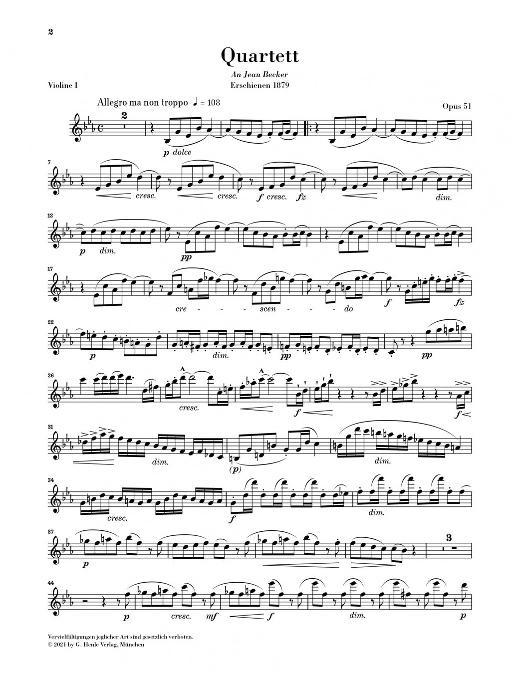 When Dvořák suddenly became internationally famous in 1878 with his Slavonic Dances, he received, among other things, a request for a new string quartet from Jean Becker, the first violinist of the renowned Florentine Quartet. The composer promptly began working in December 1878 and was able to complete the new piece three months later. Dvořák complied in a special way with the wish for a composition in “Slavonic style”: each of the four movements is informed by melodies and rhythms in the style of Czech folk dances and songs. Since then, opus 51 has not only ranked among the most important works in Dvořák’s “Slavonic period”, but also among the most popular in his chamber music oeuvre in general. Besides the first editions of the score and parts, all surviving autograph sources were consulted for this Henle Urtext edition.