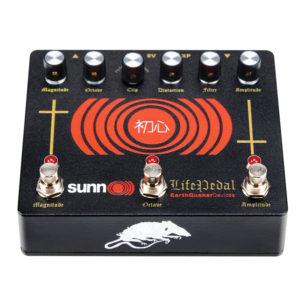 Sunn O))) and EarthQuaker Devices are pleased to bring you the Sunn O))) Life Pedal V3. The Sunn O))) Life Pedal circuit has been meticulously tweaked from the original to squeeze every last drop of heavy crushing tone available. The octave section has been fine tuned to make it more pronounced without losing the bottom end and we added a third footswitch, utilizing Flexi-Switch Technology®, for the octave to allow an additional method of quick and radical tone shaping. We are excited to have this back in permanent production, it is a true labor of love.