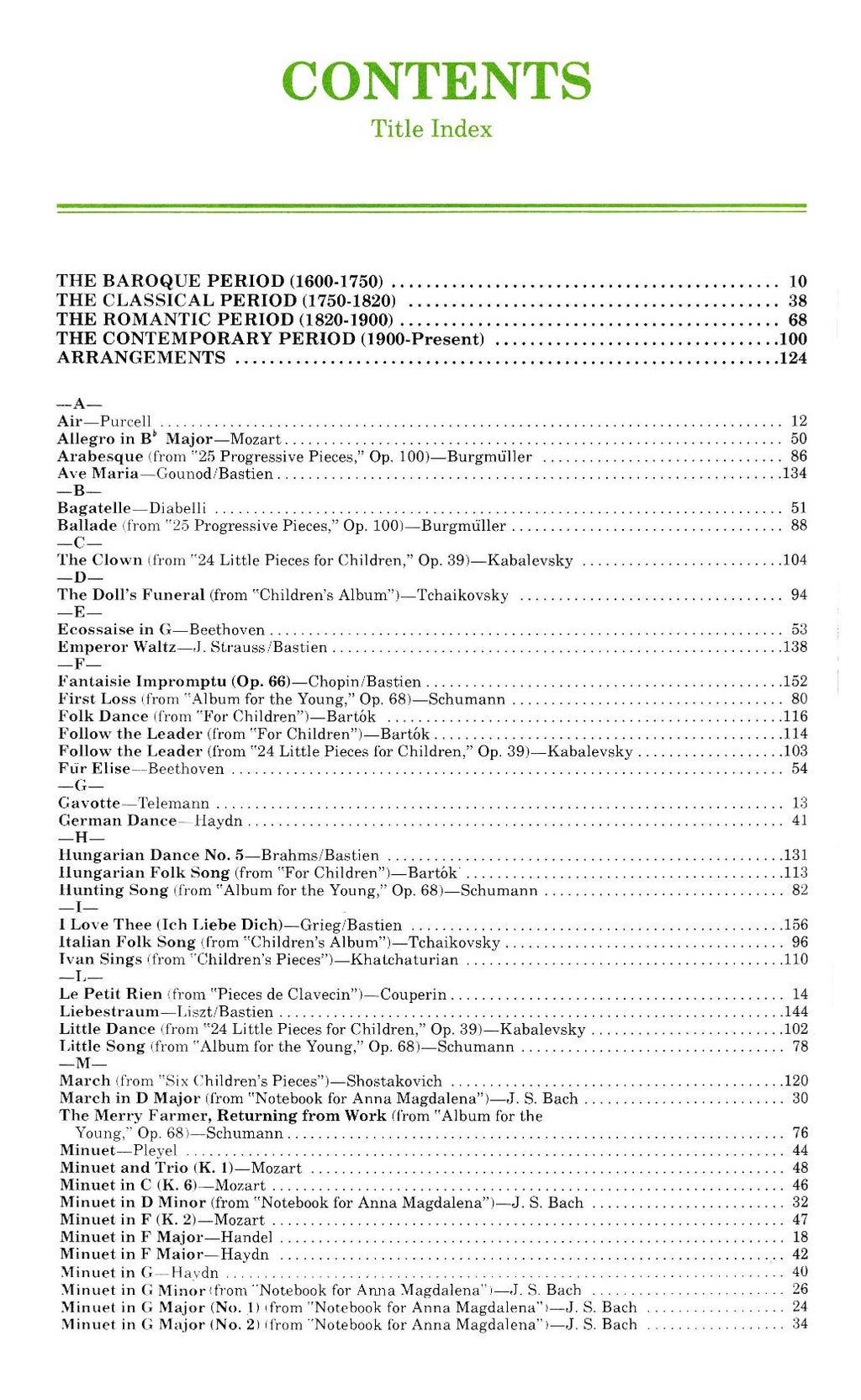 A giant selection of original piano literature plus some arrangements that pleasurably delineate the great eras of piano music. Full-color reproductions of contemporaneous masterpieces demonstrate parallel developments in art history, while annotated text enhances appreciation and understanding.