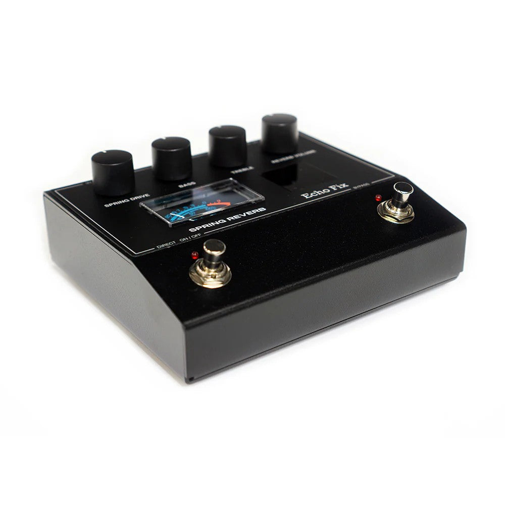 The Echo Fix EF-P2 is a real Spring Reverb pedal that packs a huge sound into a small enclosure. The EF-P2 features a three-spring reverb tank, adjustable Spring Drive, Bass / Treble EQ controls, and Reverb Volume control. With a footswitch for reverb bypass and also a direct signal mute footswitch, the EF-P2 can also be used as an outboard effect in recording studios. The EF-P2 can accept audio signal from synths and other audio devices, not just guitar.