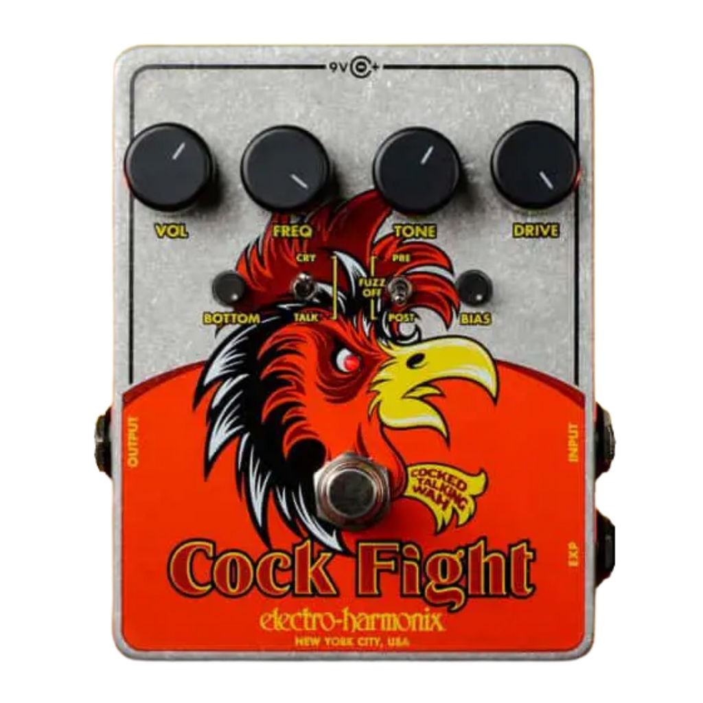Add the built-in fuzz for more grind and growl, or switch to the Talking Wah mode for a stuck voice-box sound. If you plug in an expression pedal, you can sweep the Cock Fight for jaw dropping wah and the tone you want. Add the built-in distortion for more grind and growl, or switch to the Talking Wah mode for a stuck voice-box sound.